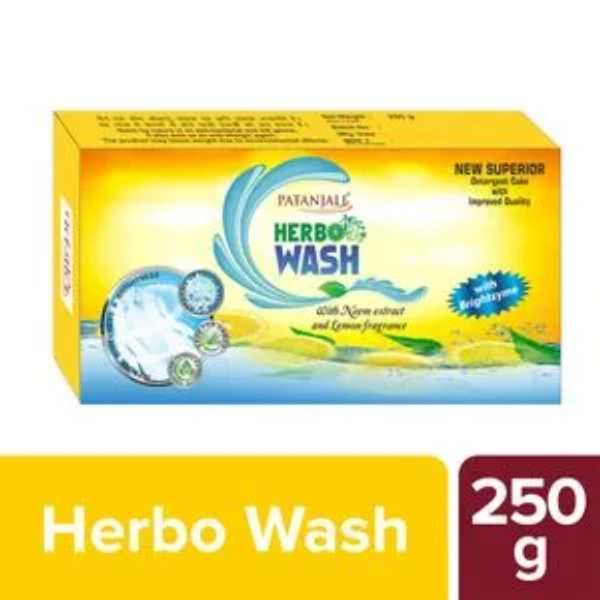 Patanjali herbo wash detergent cake with superior quality keep clothes looking fresh and clean. This detergent cake is prepared along with the herbs like 'lemon', 'neem', and brightzyme which brings shining to the cloths. Its ingredients do not contain harmful chemicals and hence, it gives security to the skin.